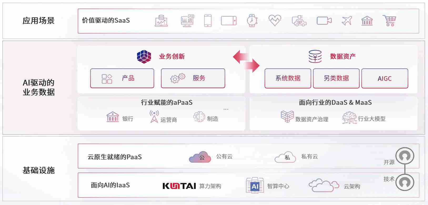 数字时代,,,围绕企业数字化转型的关键要素,,尊龙数码开创性的提出数云融合战略和技术体系框架,,,着力在云原生、、、、数字原生、、AI原生和信创产业上架构产品和服务能力,,为处在不同数字化转型阶段的快消零售、、汽车、、、、金融、、、、医疗、、、政企、、、教育、、运营商等行业客户提供泛在的敏捷IT能力和融合的数据驱动能力,,,构建跨界融合创新的数字业务场景和新业务模式,,,助力企业级客户建立面向未来的核心能力和竞争优势,,全面推动社会的数字化、、、智能化转型升级。。。